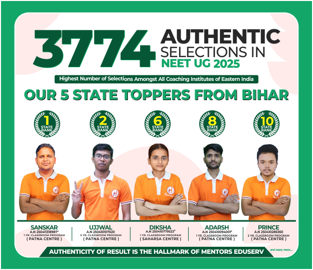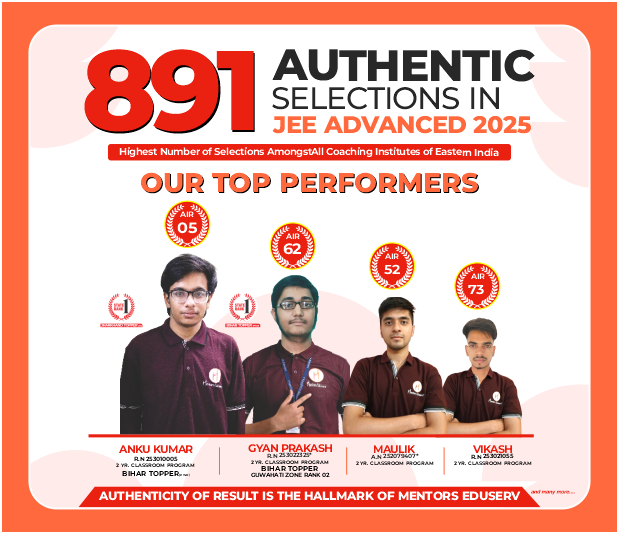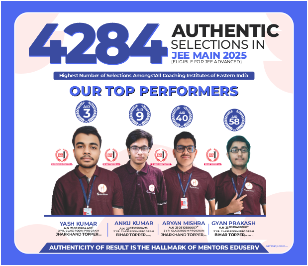 Mentors Eduserv is the best coaching institute in Eastern India for the preparation of JEE (Main & Advanced), NEET-UG, Olympiads, and Board Exams. Being the No. 1 coaching institute in Eastern India, we have consistently produced the highest number of selections in major competitive examinations (JEE & NEET) year after year among all coaching institutes in the region.